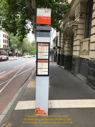 I hope this letter finds you well. I refer to the Photos Attached – The graffiti on the Queen St bus stop timetable sign at 447 Lonsdale street, Melbourne CBD, Australia, Bus Stop ID: 41730 reflects poorly on your management skills.