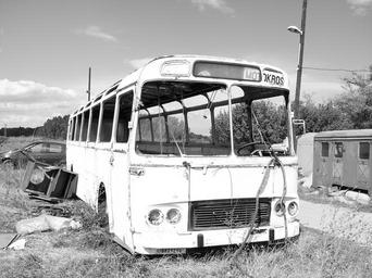 Keywords: bus transport truck old decay black and white