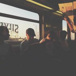 Keywords: bus transportation people newspapers reading windows