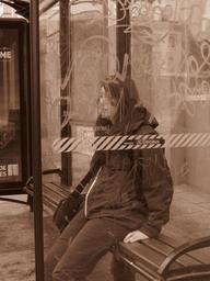 Keywords: bus wait people bus shelter retro
