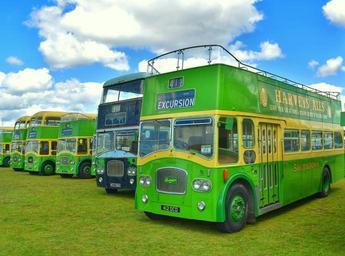 Keywords: buses retro old portsmouth uk green sky clouds summer