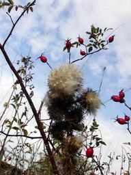 Keywords: bush autumn hip red plants nature fetus fluff thistle