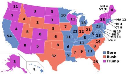 | Keywords: Bush vs. Gore vs. Trump.svg en Hypothetical 2000 U S Presidential election map pitting George W Bush against Al Gore and Donald Trump File ElectoralCollege2000 svg MB298 2016-12-05 SVG maps by MB298 Fictitious U S presidential election maps |