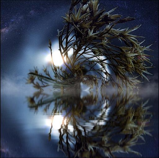 Keywords: bush water mirroring nature lake landscape shrubs mood reed atmosphere bank blatter setting river sky evening grass fog sun star water mirror wave smooth blue