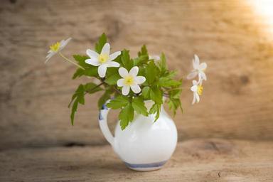 Keywords: bush-windröschen ranunculaceae anemone nemorosa spring flower early bloomer flowers white vase close light sunlight