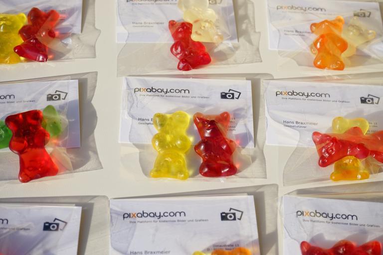 Keywords: business cards presentation gift bags gummi bears packed sachets mitbringsel cellophane fruit gums bear sweetness colorful color gelatin food nibble gummibärchen bears sweet delicious fruit jelly gold bears haribo