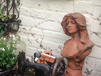 Keywords: bust clay terracotta woman yard garden old worn vintage garden ornament garden figurines junk terracotta lady
