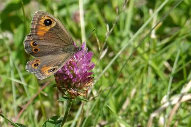 Keywords: butterfly brown eye lasiommata maera red clover wing top