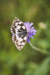 Keywords: butterfly chess board women's board edelfalter nature summer close insect satyrinae flight insect flower meadow of course experience nature chessboard butterfly deaf-skabiose landed brown white melanargia galathea animal copy space text freedom