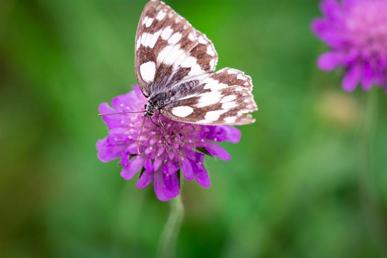 Keywords: butterfly flower purple pointed flower blossom bloom insect landed nature flower meadow summer chess board women's board satyrinae edelfalter deaf-skabiose scabiosa columbaria