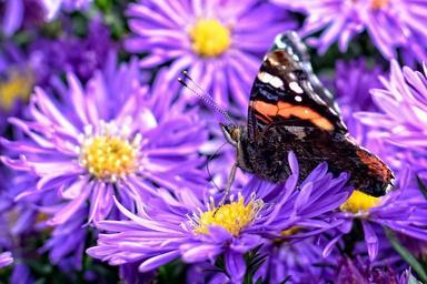 Keywords: butterfly herbstastern aster dumosus asters composites flower autumn blossom bloom purple violet purple flower admiral vanessa atalanta edelfalter