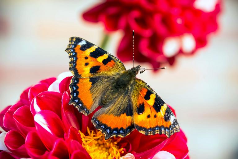 Keywords: butterfly little fox nymphalis urticae butterflies blossom bloom bicolor dahlia dahlia color colorful summer animal nature
