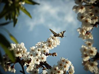 Keywords: butterfly monarch butterfly flower tree mediterranean sky nature flowering plants