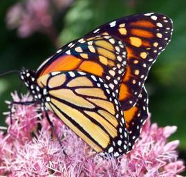 Keywords: butterfly monarch insect orange wings bug wildlife lepidoptera spots color antennae flower pink