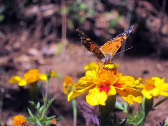 Keywords: butterfly nature flowers yellow insects orange flower