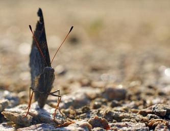 Keywords: butterfly peacock butterfly inachis io underside of wings back light ground stones earth nature