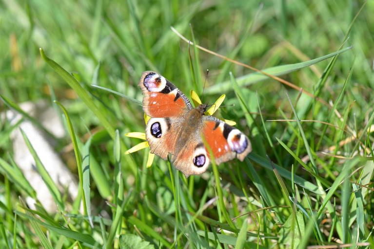 Keywords: butterfly peacock butterfly meadow insect close grass