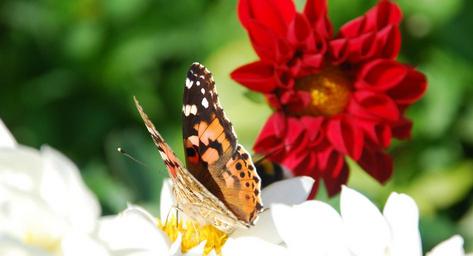 Keywords: butterfly red flower summer natural flower brown yellow