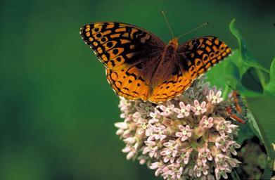 Keywords: butterfly spangled fritillary great flower milkweed blossom bloom insect wings macro colorful nectar orange nature