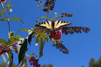 Keywords: butterfly swallowtail insect plant purple yellow black summer wildlife wing garden striped outdoors feeding sunny colorful leaf flower natural color