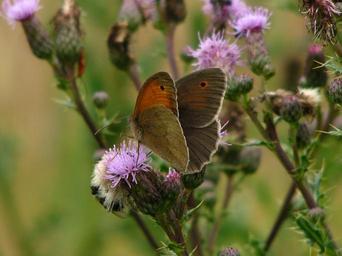 Keywords: butterfly thistle flower insect wing close probe brown orange pink