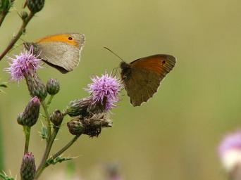 Keywords: butterfly thistle flower insect wing close probe brown orange pink