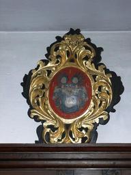 | Keywords: Buxach Dreieinigkeitskirche Wappen Grimmel.jpg Eines der vielen Wappen der Kirchenspender in der Dreieinigkeitskirche Buxach aus dem 18 Jahrhundert Wappen Grimmel Monogramm I I G own 2008-06-14 User Memmingen Dreieinigkeitskirche Buxach Paintings of coats of arms Coats of arms of families of Germany - G Grimmel Coats of arms in Memmingen Escallops in crest 1 escallop argent 1734 paintings | ||||
