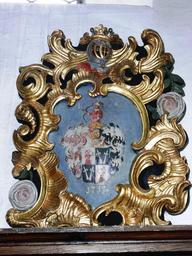 Keywords: Buxach Dreieinigkeitskirche Wappen Schütz.jpg Eines der vielen Wappen der Kirchenspender in der Dreieinigkeitskirche Buxach I V S I/J v Schütz 1757 own 2008-06-14 User Memmingen Dreieinigkeitskirche Buxach Paintings of coats of arms Coats of arms of Schütz family Memmingen Coats of arms in Memmingen 1757 paintings