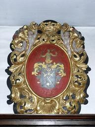 | Keywords: Buxach Dreieinigkeitskirche Wappen Zoller 1732.jpg Eines der vielen Wappen der Kirchenspender in der Dreieinigkeitskirche Buxach aus dem 18 Jahrhundert; Monogramm I P V Z ; Wappen Zoller Jahreszahl 1732 own 2008-06-14 User Memmingen Dreieinigkeitskirche Buxach Paintings of coats of arms Coats of arms of Zoller family Coats of arms in Memmingen 1732 paintings | ||||