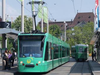 | Keywords: BVB Tram car 325, line 8 towards Neuweilerstrasse at Basel, Switserland p01.JPG BVB Tram car 325 line 8 towards Neuweilerstrasse at Basel Switserland own 1926 AlfvanBeem CC-zero Teal trams Basel tram line 8 Combino trams in Basel Basel SBB tram stop |