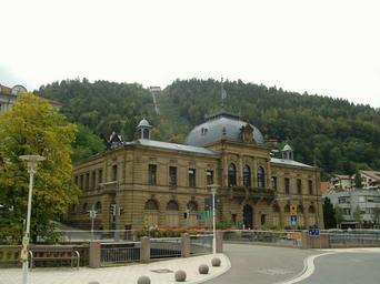 Keywords: Bwb ort5.jpg Deutsch<br> Bad Wildbad König-Karls-Bad im Hintergrund die Sommerbergbahn Own 2004-09-22 de Benutzer Ackerboy PD König-Karls-Bad Bad Wildbad