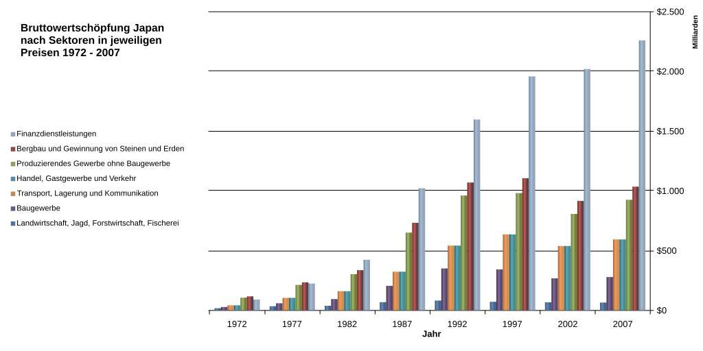 | Keywords: BWS-Japan2.svg Bruttowertschöpfung Japan nach Wirtschaftssektoren in jeweiligen Preisen im Zeitraum 1972-2007 in US-Dollar selbst vektorisiert Vorlage Bitmap von Benutzer Nina Eranosan Daten aus der United Nations Database UNdata 2009 Benutzer Nina Eranosan PD-release Original upload log de wikipedia BWS-Japan2 svg wikitable - 2011-10-04 15 41 800×400× 94242 bytes Frank Murmann <nowiki> Uncategorized 2014 August 27 | ||||