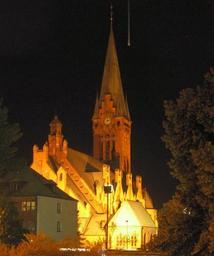 Keywords: Bydgoszcz Kościół Jezuitów nocą z mostu bernardyńskiego.jpg pl Kościół pw św Andrzeja Boboli w Bydgoszczy own Pit1233 2008 Saint Andrew Bobola church in Bydgoszcz at night