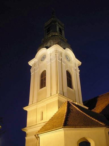 Keywords: Bydgoszcz Kościół św Mikołaja zmierzch a2.jpg pl Kościół św Mikołaja w Bydgoszczy own Pit1233 2008 Saint Nicholas church in Bydgoszcz-Fordon at night