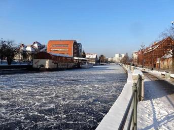 Keywords: bydgoszcz waterfront embankment buildings urban river winter poland