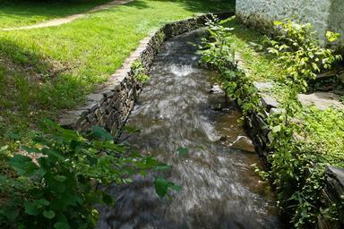| Keywords: Bypass Flume Lock 7 C and O Canal.jpg en The bypass flume flowing behind the lockkeeper's house on Lock 7 on the Chesapeake and Ohio Canal at 7 miles on the towpath The bypass flume allows water to bypass the lock and fill the level pound below the lock Without this the boats below tend to bottom out because of lack of water own Bonnachoven Chesapeake Ohio Canal National Historical Park Locks water transport Cc-zero | ||||