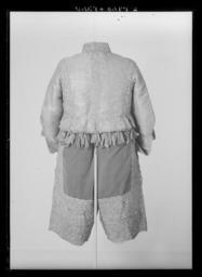 Keywords: Byxor av brunaktig grå, oskuren sammet som tillhört Karl X Gustav (1622-1660), ca 1650 - Livrustkammaren - 1359.tif Byxorna är av samma grå oskurna sammet som kappan och av rak modell De är gjorda av 4 stycken som förutom sidorna sytts samman fram och bak Mitt framtill är ett c a 30 cm långt sprund som knäpps med en 25 cm lång knäppslå Byxorna är med glesa rynkor fästade vid en 122 cm lång linning - försedd med blott en enda skarv Denna har 6 metallhakar vilka genom fodret på baksidan trätts genom linningen I linningen återstår för närvarande blott de 5 cm långa knapphålen ty de 2 knapparna saknas I knäppslån sitter 8 st knapphål 2 cm långa sydda av 2 trådar av brunt högertvinnat silke med 5 stygn/cm Samma antalknappar finns kvar på motstående sida De är av samma sort som tröjans guld- och silvertrådsklädda knappar Byxorna har i sidsömmarna 17 cm långa sprund för de stora ficksäckarna av skinn Dessa liksom knäppslån är fodrade med samma slags brokad som tröjansfoder <br/><br/>Anmärkningsvärt är att dessa byxor saknar såväl den vanligen förekommande lilla urfickan i linningen på vänster sida framtill som den mindre vertikala fickan på högra framsidan Byxorna är på insidan fodrade med vit linnelärft c a 26x23 tr/cm2 mellanfoder saknas Byxorna är garnerade med en 15 5 cm bred oliksidig knypplad uddspets av guld- och silvertråd samma slag som på kappan Den är påsydd i 2 rader nertill runt benen samt 1rad på varje sida om sidsömmen Som garnering har dessutom bandrosetter sytts fast runt hela midjan delvis på och delvis strax under linningen <br/><br/>Nu finns 20 st sådana rosetter samt något längre ner framtill 3 rosetter på vänster sida och 2 på höger Spår efter ytterligare 2 rosetter finns på linningen och vidare bör det ha funnits en rosett som sprättats bort från höger sida M a o det stämmer bra med 1671 års inventarium som omtalar 28 st silver- guld- och silkesband Rosetterna har knutits i 2 öglor och 2 ändar dels av ett bredare band i silver och mörk olivfärgat silke b 3 3 cm delas av ett smalare band knutet på samma sätt i övervägande vitt och silver b 1 2 cm Bandåtgången kan beräknas till varje rosett av det breda bandet har dragit c a 58 cm varje rosett av det smala bandet har dragit c a 56 cm Om det ursprungligen funnits 28 rosetter har bandåtgången varit 16 24 meter för breda band och 15 68 meter för smala band <br/><br/>Där spetsgarneringen fastsytts har man under sammeten lagt in ett foder av grövre vävnad På höger framsida har byxorna ett urbränt stycke i linnefodret Likaså är hål brända på byxornas insida vid hakarna närmast fickorna Vid något senare tillfälle har man lagt ett veck framtill på varje sida på linningen och 2 hyskor och hakar har sytts fast Byxorna är märkta med bläck baktill N 44 samt har en lapp med inskr 34 Det förra numret från 1789-90 års inventarium det senare till 1821 1850 och 1855 års inv original caption 1647 velvet Färg grå d1 - dräkt - yttermaterial material sammet size cm 122 midjemått LRK Karl X Gustav av Sverige Tre Karlar 1984-1985 Kungligt klädd 1987-1989 Modelejon 2002 place of origin original filename LN_B10720_013600 56375 inventory number LRK 19830 1359 CC0 Byxor av brunaktig grå oskuren sammet som tillhört Karl X Gustav 1622-1660 ca 1650 - Livrustkammaren - 1359-negative tif <gallery caption Different images of same object > File Byxor av brunaktig grå oskuren sammet som tillhört Karl X Gustav 1622-1660 ca 1650 - Livrustkammaren - 9919 tif File Byxor av brunaktig grå oskuren sammet som tillhört Karl X Gustav 1622-1660 ca 1650 - Livrustkammaren - 18481 tif File Byxor av brunaktig grå oskuren sammet som tillhört Karl X Gustav 1622-1660 ca 1650 - Livrustkammaren - 78404 tif </gallery> Trousers Media contributed by LSH unmatched material Media contributed by LSH unmatched creator Clothing in Livrustkammaren Media contributed by LSH 2013-10