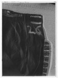 | Keywords: Byxor av svart mönstrad oskuren sammet - Livrustkammaren - 70150-negative.tif Byxorna är av rak modell med sömmar i sidorna framtill och baktill Då tyget är så smalt som 45 cm har man varit tvungen att skarva det med en kil i varje stycke vid grenen F ö finns fickor i sidsömmarna med 17 cm långa sprund en ficka även med vertikalt sprund på höger sida belägen 14 cm från den övre kanten framtill och slutligen en liten urficka i linningen på vänster sida Byxorna är obetydligt rynkade vid den 120 cm långa linningen Mitt fram i denna sitter 2 stora d 2 4 cm knappar som knäpps med 2 4 cm långa knapphål Byxorna knäpps dessutom med en 22 cm lång knäppslå som sytts fast i sprundet framtill som är ca 30 cm långt Slån har 9 knapphål alla knapparna finns kvar de är avsamma typ som tröjans Linningen är sydd på samma ledd av sammeten och har därför varit tvungen att skarvas av 3 bitar På den sitter alla de 6 3 5-4 cm långa järnhakarna kvar De sitter på sina ursprungliga platser och är genomträdda från baksidan så att foten är synlig på linnefodret där de sytts fast Några hakar är fastsydda med brunt andra med svart silke Byxorna saknar mellanfoder Innerfodret är av vit linnelärft 30x18 tr / cm2 eller27x19 tr / cm 2 av ca 93 cm bredd man har också här måst göra små kilar grenen Fodret i byxsäckarna är likaledes av linnelärft ung samma kvalitet Dessutom är ficksäckarna stofferade med tröjans fodertyg Baktill i linnefodret har man på höger sida gjort en mindre horisontell skarv Nedtill har byxorna en ca 1 cm bred kantslå Den är sydd på snedden av tyget och når lika högt upp 1 cm på byxorna insida Byxornas fickkanter de sneddade framkanterna och tröjans kanter vid ärmuppslagen är skodda med svart band 16 inslagstr / cm Som garnering finns ännu kvar den sammankomponerade 5 cm breda spetsen av samma sort som på tröjan På ömse sidor om sidsömmarna sitter en sådan rad av spets Nedtill vid knäet finner man på samma sätt en horisontell spetsgarnering dock slutar denna ca 2 cm ovanför byxkanten Byxorna har dessutom ursprungligen garnerats med 3 rosetter i horisontell rad utanpå låren och 6 har suttit i omvänd pyramidformation på varje framstycke 3 horisontella i översta raden sedan 2 och nederst 1 original caption decade 1640 velvet Färg svart d1 - dräkt - yttermaterial material sammet LRK Karl X Gustav av Sverige Modelejon 2002 place of origin original filename LN_B13768_016648 55873 inventory number LRK 19319 70150 CC0 Byxor av svart mönstrad oskuren sammet - Livrustkammaren - 70150 tif <gallery caption Different images of same object > File Byxor av svart mönstrad oskuren sammet - Livrustkammaren - 78709 tif </gallery> |