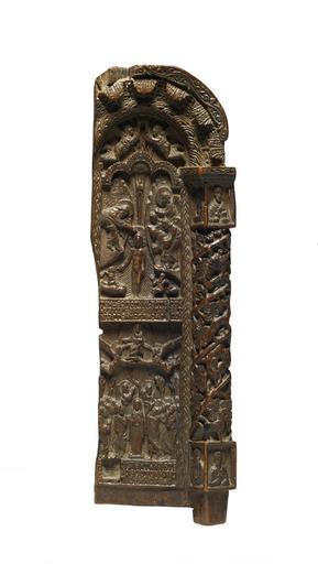 | Keywords: Byzantine - Baptism and Ascension of Christ - Walters 61115.jpg This woodcarving contains images of Christ's Baptism and Ascension accompanied by versified inscriptions and framed with busts of the prophets Elisha Micah Haggai and Joel Saint John Chrysostom and Saint Theodore Stratelates The panel once formed one of the four walls of a rectangular box or cross base Another fragment from the same object with images of the Raising of Lazarus and Dormition Death of the Virgin is now in the Hermitage Museum Saint Petersburg inv Omega 265 century 14 Medieval wood cm 24 1 7 6 2 7 accession number 61 115 1670 Léon Gruel Paris date of acquisition unknown by purchase Henry Walters city Baltimore Walters Art Museum Henry Walters Acquired by Henry Walters 1929 Translation Baptize Our Lord O son of Zachariah But do not entreat Him to wash the filth from mankind Like an eagle seeing the sun in all its brightness The apostles watch the rising of Our Savior Early Christian and Byzantine Art Baltimore Museum of Art Baltimore 1947 place of origin Greece Walters Art Museum license Byzantine and Early Russian art in the Walters Art Museum Decorative and applied arts of Byzantine Empire Media contributed by the Walters Art Museum needs category review |
