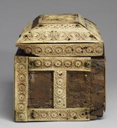 | Keywords: Byzantine - Box with Scenes from the Fall of Adam and Eve and the Story of Joseph - Walters 71295 - Right.jpg The front of this casket depicts the Fall of Adam and the Temptation of Eve flanking the Sorrowing Adam below the lockplate A fourth plaque on the back of the casket portrays Adam hiding behind a tree and covering his nudity The large rectangular plaque set into the casket's lid shows the Old Testament patriarch Jacob ordering his son Joseph to follow his brothers and the Angel of the Lord guiding his way These Old Testament images must have been intened as moral examples for the box's owner It was probably used in a private home for the safekeeping of valuables In Constantinople where urban life especially in the middle Byzantine period 843-1204 surpassed that of any western center luxury items such as boxes made of ivory and bone were in great demand and produced serially A number of details point toward such a system of manufacture many extant boxes have similar dimensions and often the borders were cut to size and used as fillers The plaque on the lid of this box with biblical scenes is smaller than the allotted space a sign that it was not made to measure Likewise the presence of peg holes prepared but not drilled through like those in the upper left border indicates that the plaque was part of a stockpile and not custom made These techniques allowed workshops to produce more affordable wares thus meeting the needs of a larger market The wealthier patrons might order a custom-made box covered in ivory plaques consumers of more modest means could purchase a box decorated with the plaques and strips of carved bone that the workshop kept in stock century 10 11 Medieval bone ivory wood cm 18 7 27 8 17 9 accession number 71 295 7841 Henry Walters city Baltimore Walters Art Museum Henry Walters Acquired by Henry Walters 1926 Translation Jacob Sending Joseph out to His Brothers Angel of the Lord The Transgression of Adam The Snake Speaking to Eve Early Christian and Byzantine Art Baltimore Museum of Art Baltimore 1947 place of origin Constantinople present-day Istanbul Turkey <gallery> File Byzantine - Box with Scenes from the Fall of Adam and Eve and the Story of Joseph - Walters 71295 - Back jpg File Byzantine_-_Box_with_Scenes_from_the_Fall_of_Adam_and_Eve_and_the_Story_of_Joseph_-_Walters_71295_-_Interior_Top jpg File Byzantine_-_Box_with_Scenes_from_the_Fall_of_Adam_and_Eve_and_the_Story_of_Joseph_-_Walters_71295_-_Left jpg File Byzantine - Box with Scenes from the Fall of Adam and Eve and the Story of Joseph - Walters 71295 - Three Quarter jpg File Byzantine - Box with Scenes from the Fall of Adam and Eve and the Story of Joseph - Walters 71295 - Top jpg File Byzantine - Box with Scenes from the Fall of Adam and Eve and the Story of Joseph - Walters 71295 jpg </gallery> Walters Art Museum license Byzantine ivory in the Walters Art Museum Decorative and applied arts of Byzantine Empire Media contributed by the Walters Art Museum needs category review |