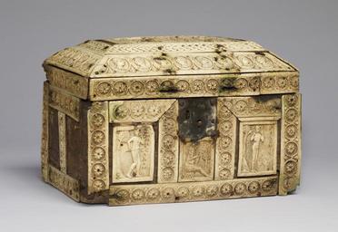 | Keywords: Byzantine - Box with Scenes from the Fall of Adam and Eve and the Story of Joseph - Walters 71295 - Three Quarter.jpg The front of this casket depicts the Fall of Adam and the Temptation of Eve flanking the Sorrowing Adam below the lockplate A fourth plaque on the back of the casket portrays Adam hiding behind a tree and covering his nudity The large rectangular plaque set into the casket's lid shows the Old Testament patriarch Jacob ordering his son Joseph to follow his brothers and the Angel of the Lord guiding his way These Old Testament images must have been intened as moral examples for the box's owner It was probably used in a private home for the safekeeping of valuables In Constantinople where urban life especially in the middle Byzantine period 843-1204 surpassed that of any western center luxury items such as boxes made of ivory and bone were in great demand and produced serially A number of details point toward such a system of manufacture many extant boxes have similar dimensions and often the borders were cut to size and used as fillers The plaque on the lid of this box with biblical scenes is smaller than the allotted space a sign that it was not made to measure Likewise the presence of peg holes prepared but not drilled through like those in the upper left border indicates that the plaque was part of a stockpile and not custom made These techniques allowed workshops to produce more affordable wares thus meeting the needs of a larger market The wealthier patrons might order a custom-made box covered in ivory plaques consumers of more modest means could purchase a box decorated with the plaques and strips of carved bone that the workshop kept in stock century 10 11 Medieval bone ivory wood cm 18 7 27 8 17 9 accession number 71 295 7841 Henry Walters city Baltimore Walters Art Museum Henry Walters Acquired by Henry Walters 1926 Translation Jacob Sending Joseph out to His Brothers Angel of the Lord The Transgression of Adam The Snake Speaking to Eve Early Christian and Byzantine Art Baltimore Museum of Art Baltimore 1947 place of origin Constantinople present-day Istanbul Turkey <gallery> File Byzantine - Box with Scenes from the Fall of Adam and Eve and the Story of Joseph - Walters 71295 - Back jpg File Byzantine_-_Box_with_Scenes_from_the_Fall_of_Adam_and_Eve_and_the_Story_of_Joseph_-_Walters_71295_-_Interior_Top jpg File Byzantine_-_Box_with_Scenes_from_the_Fall_of_Adam_and_Eve_and_the_Story_of_Joseph_-_Walters_71295_-_Left jpg File Byzantine - Box with Scenes from the Fall of Adam and Eve and the Story of Joseph - Walters 71295 - Right jpg File Byzantine - Box with Scenes from the Fall of Adam and Eve and the Story of Joseph - Walters 71295 - Top jpg File Byzantine - Box with Scenes from the Fall of Adam and Eve and the Story of Joseph - Walters 71295 jpg </gallery> Walters Art Museum license Byzantine ivory in the Walters Art Museum Decorative and applied arts of Byzantine Empire Reliefs of Temptation of Adam and Eve Media contributed by the Walters Art Museum needs category review |