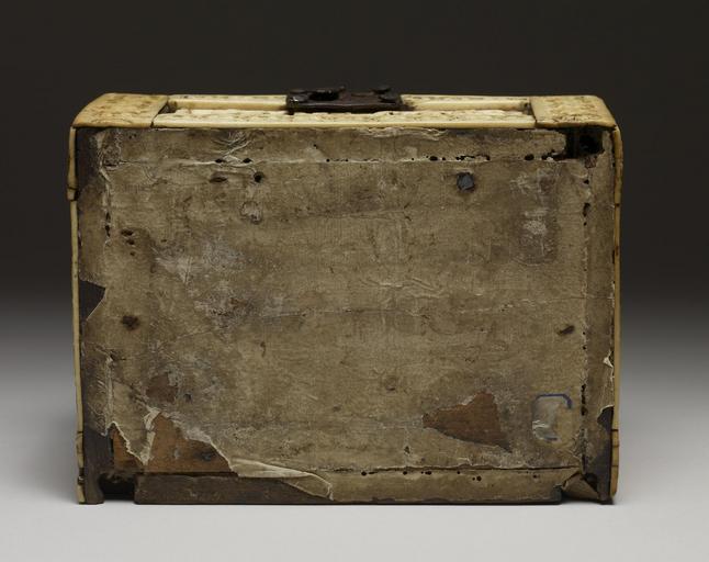 | Keywords: Byzantine - Casket with Images of Cupids - Walters 71298 - Bottom.jpg This finely carved ivory casket is decorated with curly-haired erotes cupids in the guise of warriors dancers and musicians The lid shows two in equestrian combat while the trapezoidal panel in front shows a group of four erotes and a centaur dancing and playing musical instruments The rectangular plaque on the casket's front features an eros playing a harp on a stand a chariot drawn by panthers and two other erotes playing musical instruments century 10 Medieval bone ivory wood cm 12 6 18 5 13 5 accession number 71 298 31653 Bought in Italy Edward Joseph London ca 1888 by purchase Sale Christie's London May 6 1890 no 1003 and February 1894 no 357 Isaac Falcke London 1894 by purchase Sale Christie's London April 19 1910 no 166 Jacques Seligmann Paris 1910 by purchase Henry Walters city Baltimore Walters Art Museum Henry Walters Acquired by Henry Walters 1910 Early Christian and Byzantine Art Baltimore Museum of Art Baltimore 1947 Ivory The Sumptuous Art The Walters Art Gallery Baltimore 1983-1984 The Taste of Maryland Art Collecting in Maryland 1800-1934 The Walters Art Gallery Baltimore 1984 place of origin Constantinople present-day Istanbul Turkey Walters Art Museum license Byzantine ivory in the Walters Art Museum Decorative and applied arts of Byzantine Empire Media contributed by the Walters Art Museum needs category review |