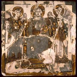 | Keywords: Byzantine - Christ Enthroned Between Two Archangels - Walters 4820865.jpg Like an emperor surrounded by his officials Christ is shown here seated on a throne and flanked by the two archangels Michael and Gabriel dressed in Byzantine court costume He blesses with one hand and holds a Gospel book in the other Although of unknown origin this tile is very similar to ones known to have been made in the Byzantine capital Constantinople now Istanbul century 10 Medieval ceramic with glaze cm 17 1 16 8 0 9 accession number 48 2086 5 21546 Nikos Avgheris Istanbul ca 1950 by purchase Robert E Hecht Ruxton Maryland 1956 by purchase Walters Art Museum 1956 by purchase Partial museum purchase with funds provided by the S A P Fund 1956 and partial gift of Mr Robert E Hecht Jr 1957 place of origin Constantinople present-day Istanbul Turkey Walters Art Museum license 2D Byzantine and Early Russian art in the Walters Art Museum Byzantine art Media contributed by the Walters Art Museum needs category review |