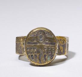 | Keywords: Byzantine - Marriage Ring with Scenes from the Life of Christ - Walters 4515.jpg This rare octagonal ring is decorated with eight scenes from the life of Christ with the Ascension seen on the flat surface of the bezel top Protective powers were attributed to scenes of the life of Christ which combine to form a prayer in pictures century 6 7 Late Antique gold niello cm 1 7 2 3 2 6 accession number 45 15 11447 Henry Walters Baltimore date of acquisition unknown by purchase Walters Art Museum Henry Walters Acquired by Henry Walters Translation + Holy holy holy is the Lord of Hosts Isaiah 6 3 Early Christian and Byzantine Art Baltimore Museum of Art Baltimore 1947 Jewelry - Ancient to Modern The Walters Art Gallery Baltimore 1979-1980 Bedazzled 5 000 Years of Jewelry from the Walters Art Museum Frist Center for the Visual Arts Nashville; The John and Mable Ringling Museum of Art Sarasota; The Walters Art Museum Baltimore 2006-2009 Bedazzled 5 000 Years of Jewelry El Paso Museum of Art El Paso 2010 place of origin Egypt Walters Art Museum license Byzantine and Early Russian art in the Walters Art Museum Jewellery in the Walters Art Museum Byzantine art in Egypt Wedding rings |