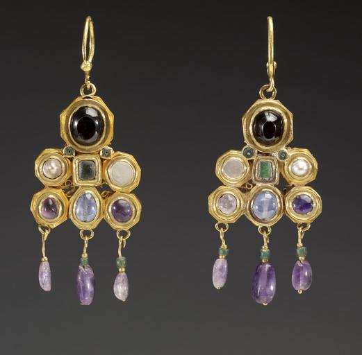 | Keywords: Byzantine - Pair of Earrings - Walters 57560, 57561.jpg These dramatic colorful earrings were most likely made in Constantinople perhaps as an imperial gift to a Visigothic ruler of medieval Spain where the earrings were found The Visigoths a migratory group that ultimately settled in Spain had by the 6th century established trade and diplomatic contacts with the Byzantine court whose jewelry they much admired ca 600 Early Medieval gold pearls and semiprecious stones cm 11 2 4 4 2 5 accession number 57 560 57 561 77410 Found in Estremadura Henri Daguerre Paris date of acquisition unknown by purchase Henry Walters Baltimore October 1930 by purchase Walters Art Museum Henry Walters Acquired by Henry Walters 1930 place of origin Constantinople present-day Istanbul Turkey Walters Art Museum license Ancient Roman art in the Walters Art Museum Jewellery in the Walters Art Museum Byzantine earrings Media contributed by the Walters Art Museum needs category review Byzantine jewellery Ancient earrings |