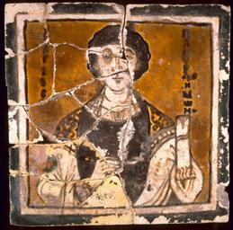 | Keywords: Byzantine - Saint Panteleimon - Walters 4820864.jpg Panteleimon a physician who became a saint through his great charity for the poor miracles and martyrdom is shown here with a lancet in his right hand This tile is one among three in the Walters Art Museum that have the same size and contain identical busts of male saints the other two depict Saint Basil inv 48 2086 17 and Saint Arethas inv 48 2086 2 The series probably formed a frieze on a church wall or altar screen century 10 Medieval ceramic with glaze cm 17 1 17 3 0 9 accession number 48 2086 4 26666 Nikos Avgheris Istanbul ca 1950 by purchase Robert E Hecht Ruxton Maryland 1956 by purchase Walters Art Museum 1956 by purchase Partial museum purchase with funds provided by the S A P Fund 1956 and partial gift of Mr Robert E Hecht Jr 1957 place of origin Constantinople present-day Istanbul Turkey Walters Art Museum license 2D Byzantine and Early Russian art in the Walters Art Museum Icons in ceramic Byzantine art Icons of Saint Pantaleon |