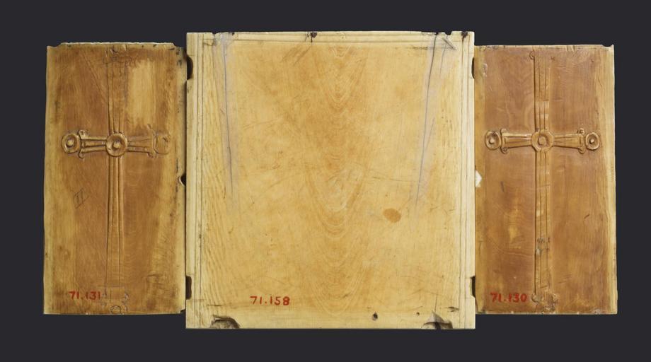 | Keywords: Byzantine - Triptych Icon of the Virgin and Child with Saints - Walters 71158 - Back Open.jpg The center of this exquisite triptych three-paneled icon shows the Virgin holding the Christ Child and pointing toward him with her right hand This portrait type of the Virgin is known as Hodegetria named after a famous icon in the Hodegon monastery in Constantinople believed in the Middle Ages to have been painted by Saint Luke the Evangelist On the wings two pairs of unnamed saints pay homage to the Virgin and Child Barely visible traces of pigment and gold remain on this triptych indicating that it was once brightly colored The panels of the triptych were cut down at some point and the wings and central section do not align perfectly suggesting that this object might be the result of two earlier pieces being joined together century 10 Medieval ivory Overall cm 12 23 4 0 9 ; Proper left panel cm 10 9 5 6 0 5 ; Middle panel cm 12 11 6 0 9 ; Proper right panel cm 11 5 7 0 5 accession number 71 158 25072 Heinrich von Hofstätter Bishop of Passau Gnadenkapelle Altötting Bavaria 1867 by gift Tycon and Smith Paris 1905 by purchase Henry Walters city Baltimore Walters Art Museum Henry Walters Acquired by Henry Walters 1929 Early Christian and Byzantine Art Baltimore Museum of Art Baltimore 1947 Ivory The Sumptuous Art The Walters Art Gallery Baltimore 1983-1984 The Glory of Byzantium The Metropolitan Museum of Art New York 1997 Highlights from the Collection The Walters Art Gallery Baltimore 1998-2001 The Mother of God Representations of the Virgin in Byzantine Art Benaki Museum Athens 2000-2001 place of origin Constantinople present-day Istanbul Turkey Walters Art Museum license Byzantine ivory in the Walters Art Museum Decorative and applied arts of Byzantine Empire Media contributed by the Walters Art Museum needs category review |