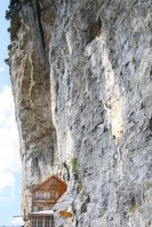 Keywords: äscher cliff restaurant restaurant ebenalp appenzell switzerland mountains mountain hut romantic mountain station alpstein home nature exposed steep wall downhill