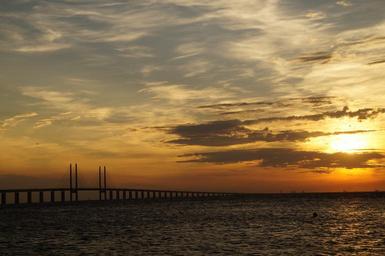 Keywords: öresund oresund bridge bridge abendstimmung malmö copenhagen connection baltic sea sea sky evening sky sunset