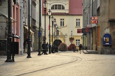 Keywords: żary morning street houses lanterns